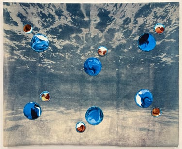 Water Cycle, 2022, 42 x 30 cm,cyanotype and collage on canvas
